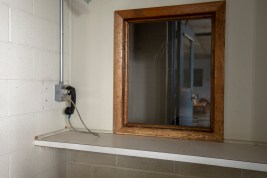 Plainedge High School in Massapequa, New York unveiled new security systems for this school year including X Shield Smart Displays with cameras like this one installed in one of the classrooms, shown on Aug. 28, 2025. (Photo by Drew Singh/Newsday RM via Getty Images)